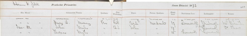 - He was a candidate for Mayor of Limerick for 1876.