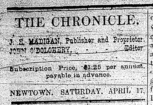 - John O'Dolohery became editor of The Chronicle in Newtown, CT